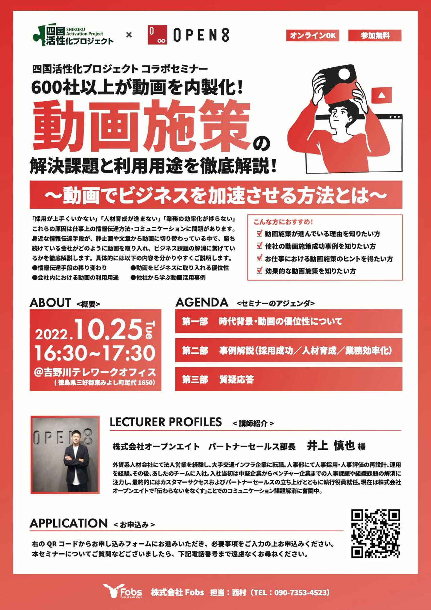 【徳島県でリアル開催!10月25日 (火)16:30 無料セミナー】パートナーセールス部長の井上が『四国活性化プロジェクトコラボセミナー』に登壇します!「動画でビジネスを加速させる方法とは」