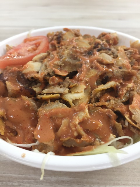 *ケバブライス大盛り。「お肉と野菜とたれの騎馬戦や~!」
