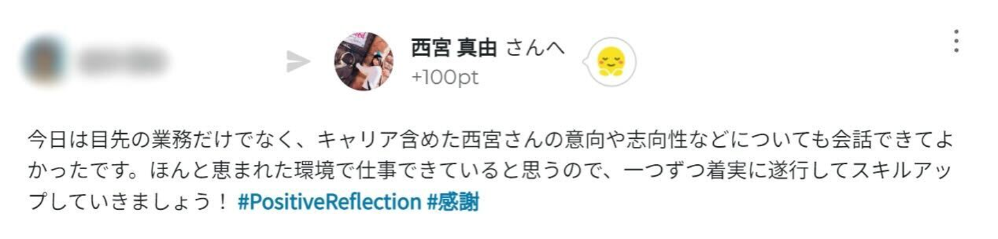 また、オープンロジではピアボーナス制度を導入していて、Unipos(ユニポス)というツールを使ってポイントと一緒に感謝のメッセージをもらうことができます。バリューに照らし合わせたメッセージをいただく機会もあり、そういったときもバリューの浸透を感じます。