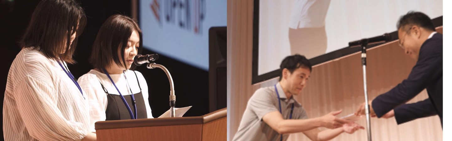Pe-1グランプリ:予選を勝ち抜いたエンジニア部門2組、スタッフ部門3組のプレゼンテーションが行われました。各部署や社員一人ひとりのMVVに基づく行動を理解する場となりました。