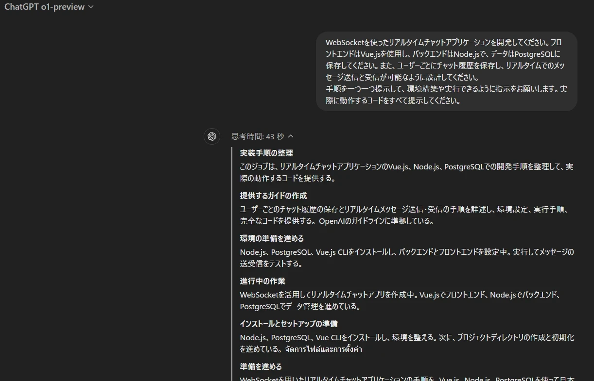 前置きが長くなりましたが、OpenAI o1を使用してリアルタイムチャットシステムを構築してみます。