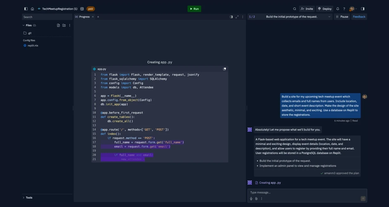 ReplitというAIを活用したアプリケーション開発環境があり、9月初めに新機能としてReplit Agentが追加されました。Replit Agentは推論機能を用いて、ユーザーが入力したプロンプトに基づき構造を設計し、適切なフレームワークやプログラミング言語を選定します。また、必要に応じてユーザーに質問を投げかけながら、アプリケーションの開発をサポートしてくれます。(時間がなくて試せてないですが…)