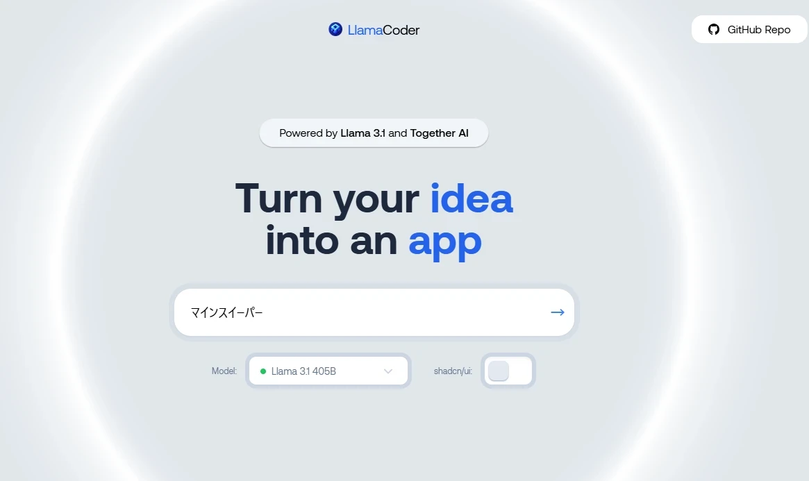 Llama Coderは、Together AIが開発したオープンソースのウェブアプリケーションで、簡単な指示でフルスタックのアプリケーションを生成できます。MetaのLlama 3.1モデルを基盤にしており、コード生成や補完が可能です。