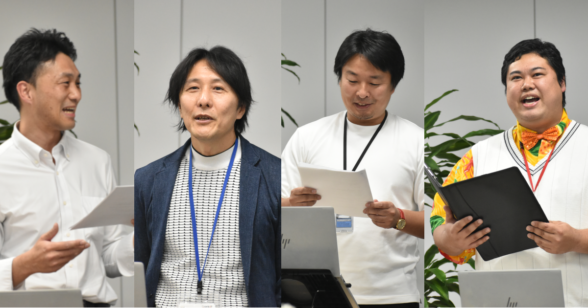 副賞部門は「エンタメ部門」「AI部門」「OPG部門」「スモールアイデア部門」の4つで勝ち残ったチームを四天王4部長がプレゼン。その場で社内投票を行い、受賞チームを決めました!
