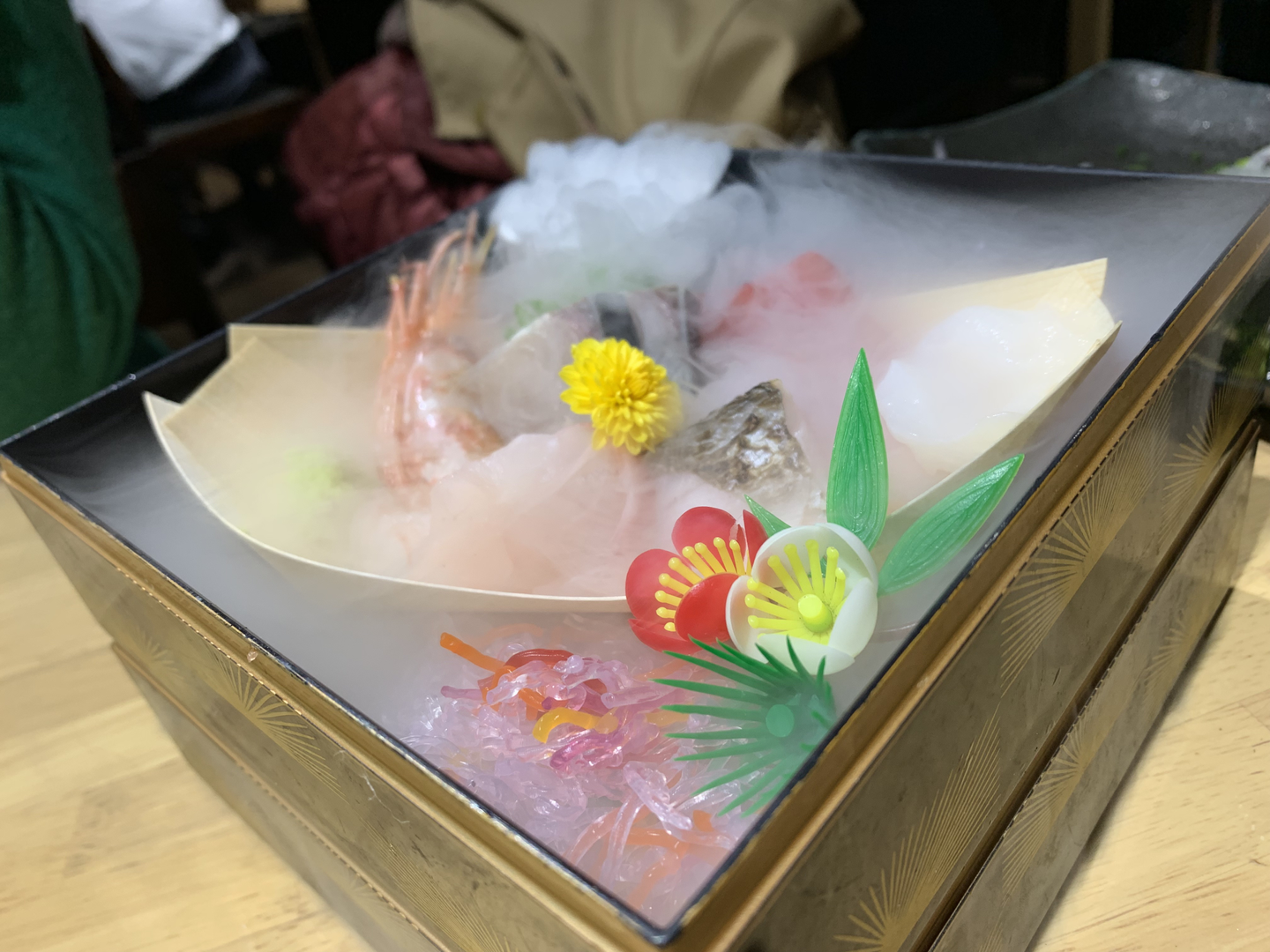 注文率99.9%?を誇る人気商品。ドライアイスが効きすぎていてお刺身が全く見えないが、一先ず刺身を食べて感動したいなら頼むしかない!もちろんワガママ?Senriもこれには感動。当社に入社すると間違いなく高確率で連れていかれるお店。あまりお酒が飲めなくても雰囲気に飲まれていきなり日本酒に挑戦したくなる魔力を秘めている一品。