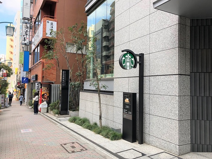 少し行くと、スターバックスコーヒージャパンの本社が入るビルが右手に見えてきます。みなさんおなじみのマークもあります!