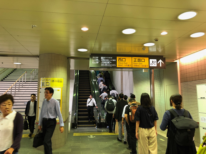 改札を出たら「正面口」に向かってエスカレーターを上がり、地上まで出てください。