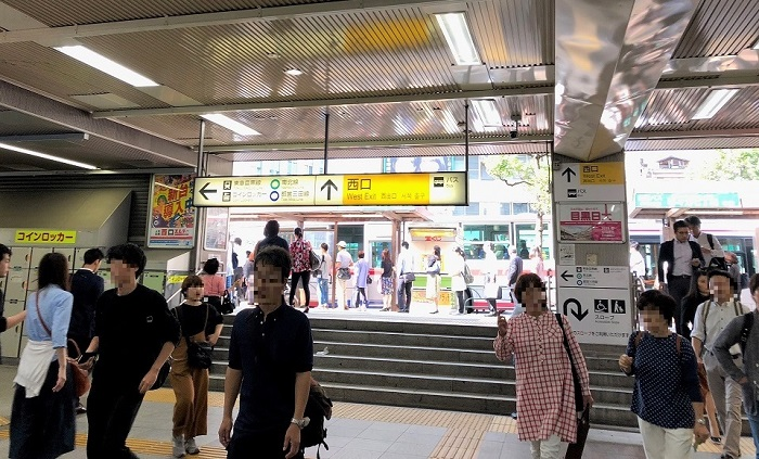 目黒駅で下車。階段を上がり「中央改札」を出て左へ。「西口」から外にでます。
