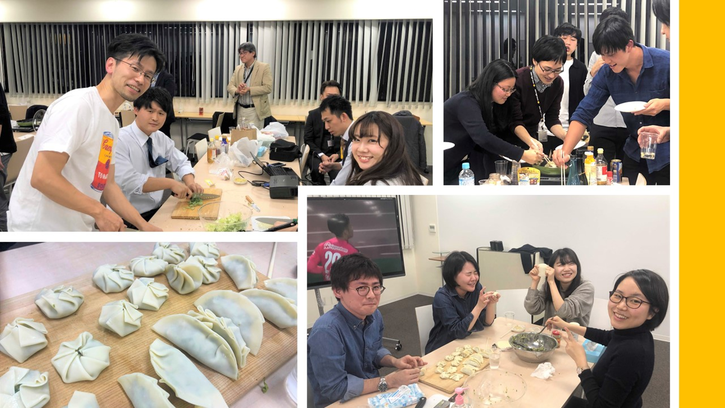 事業部を越えて、わいわいと餃子を作りながらお酒と共に楽しい金曜日の夜を過ごしました。