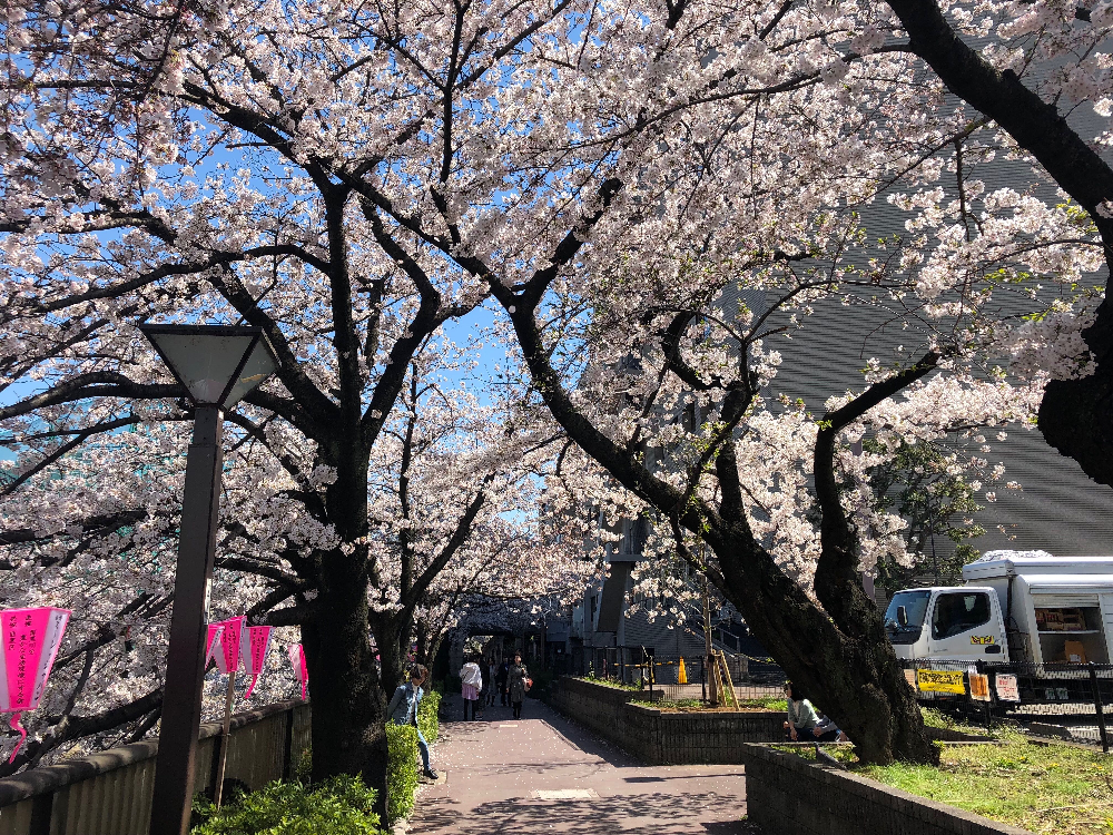 目黒川沿いはサクラのトンネルができるので、本当にきれいです。