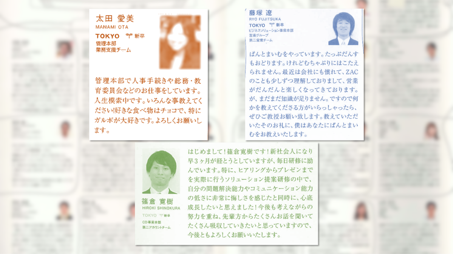 ・・・気分的に懐かしくてしばらく眺めていると、今もオロで活躍している、10年以上前に新卒入社した社員さんのフレッシュな自己紹介を発見しました。