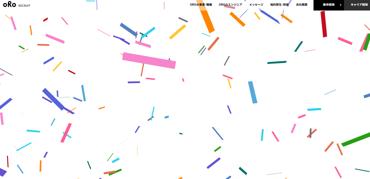 スクロールすると表れる無数のカラーバーは、オロの各職種をイメージしたカラーになっています。