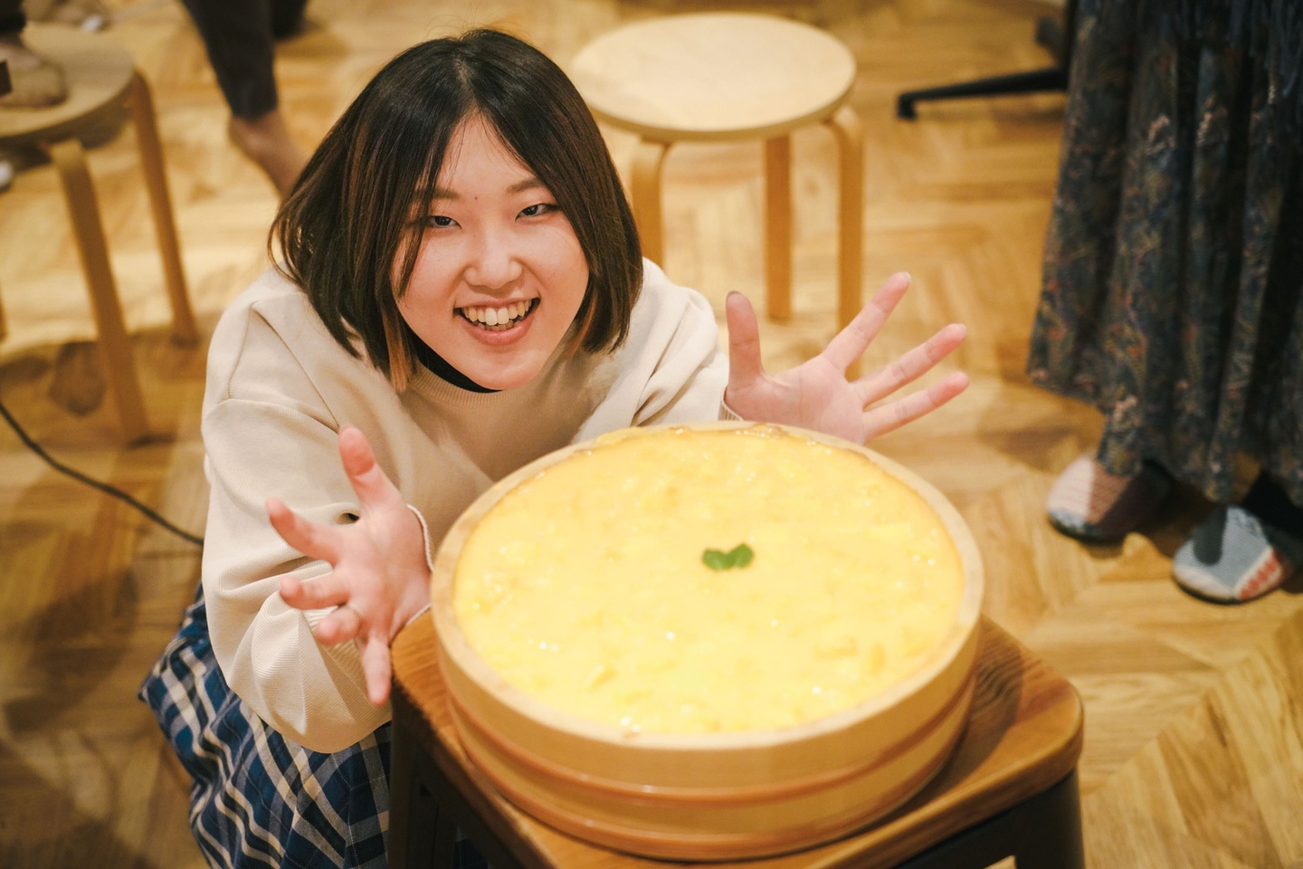 ▲入社式で私の大好きなマンゴーをあしらった「巨大マンゴープリン」を作っていただきました笑