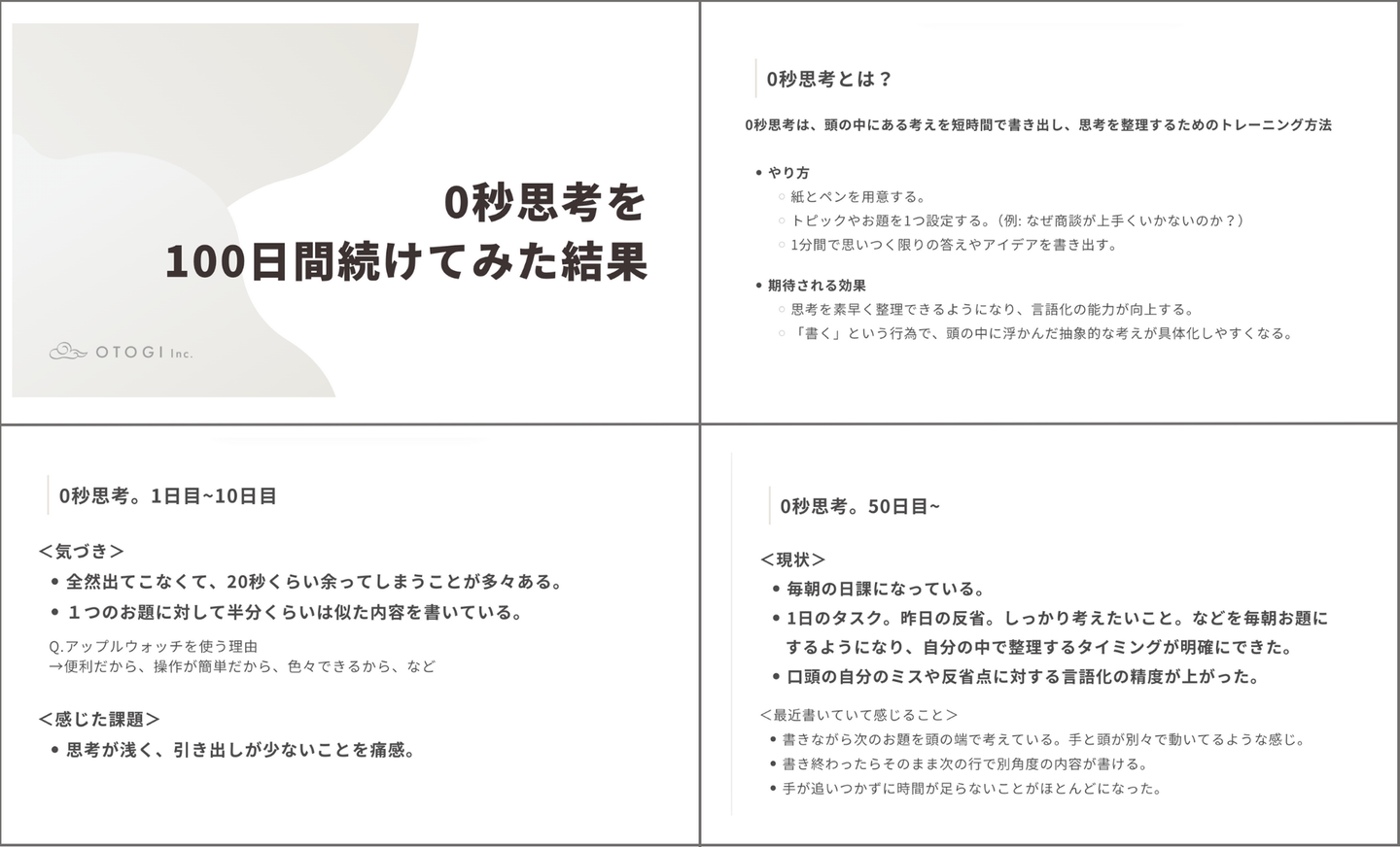 なんと、「0秒思考」という思考法を「100日間」継続してみた!という実録プレゼン!