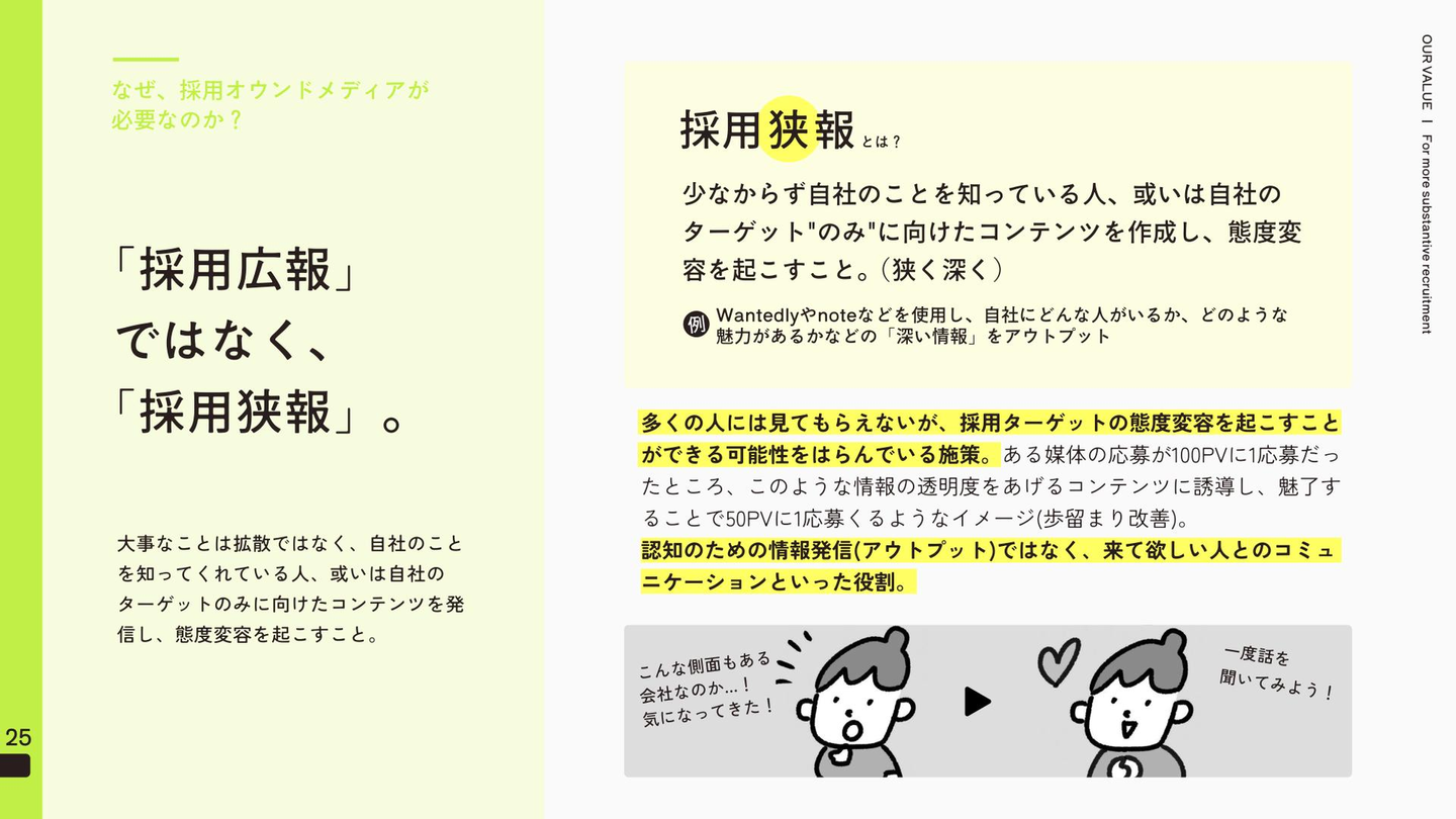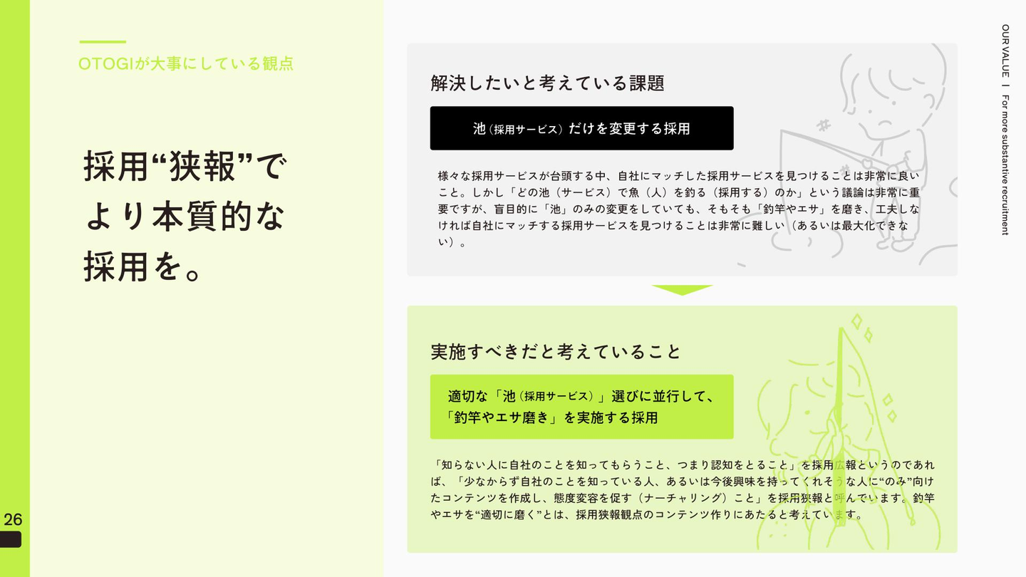 余談ですが、この「採用狭報」というワードは弊社OTOGIが創ったワードではなく、デジタルマーケティング事業を展開されている、ナイル株式会社の人事、渡邉慎平さんの造語でそこから拝借しています。