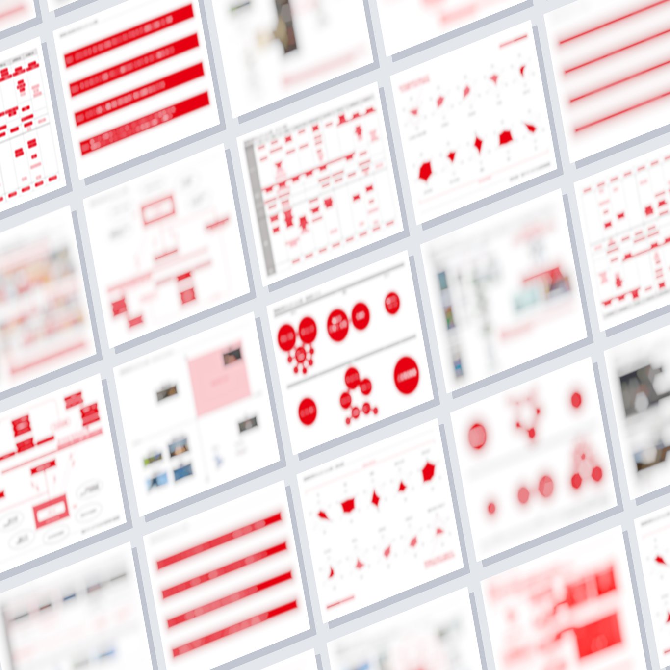 社内アンケートやインタビュー、業界リサーチなどのコンセプト設計に関わる提案資料