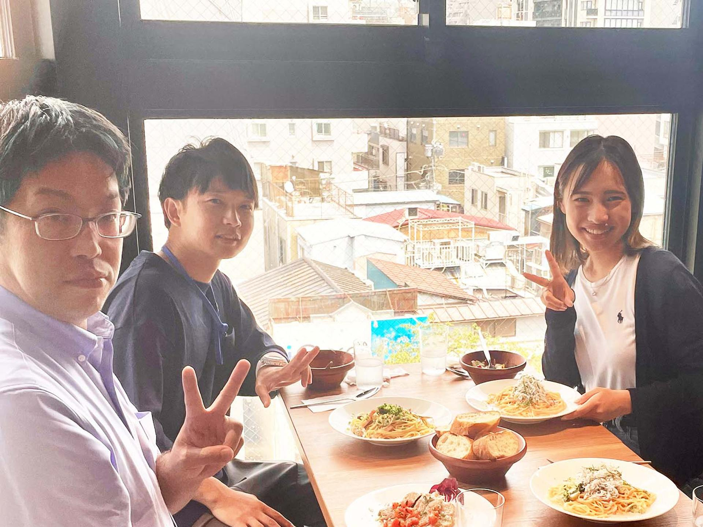そんな話題のハシゴ楼ですが、今回は部署の垣根を超えて4〜5人のグループを編成し、自分たちで決めたお店にランチに行ってきました!会社から費用サポートもあり、今まで行ったことのないお店にもチャレンジしました。ランチ会では仕事のことからプライベートのことまで話の内容は盛りだくさん。