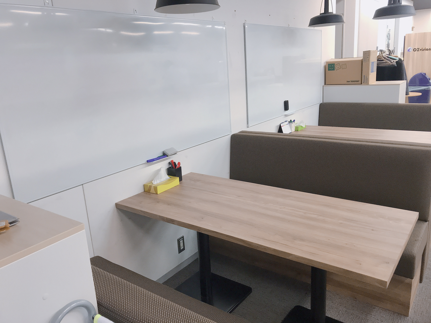 ここはファミレスと言われる会議テーブルです。毎週火曜日はたくさんの会議が一日ずっと続きますので、空いてる会議室が見つからない時にいつもファミレスに助けられてます。このファミレスはWeWorkまで一緒に引っ越すらしいです!o(*^▽^*)o~♪