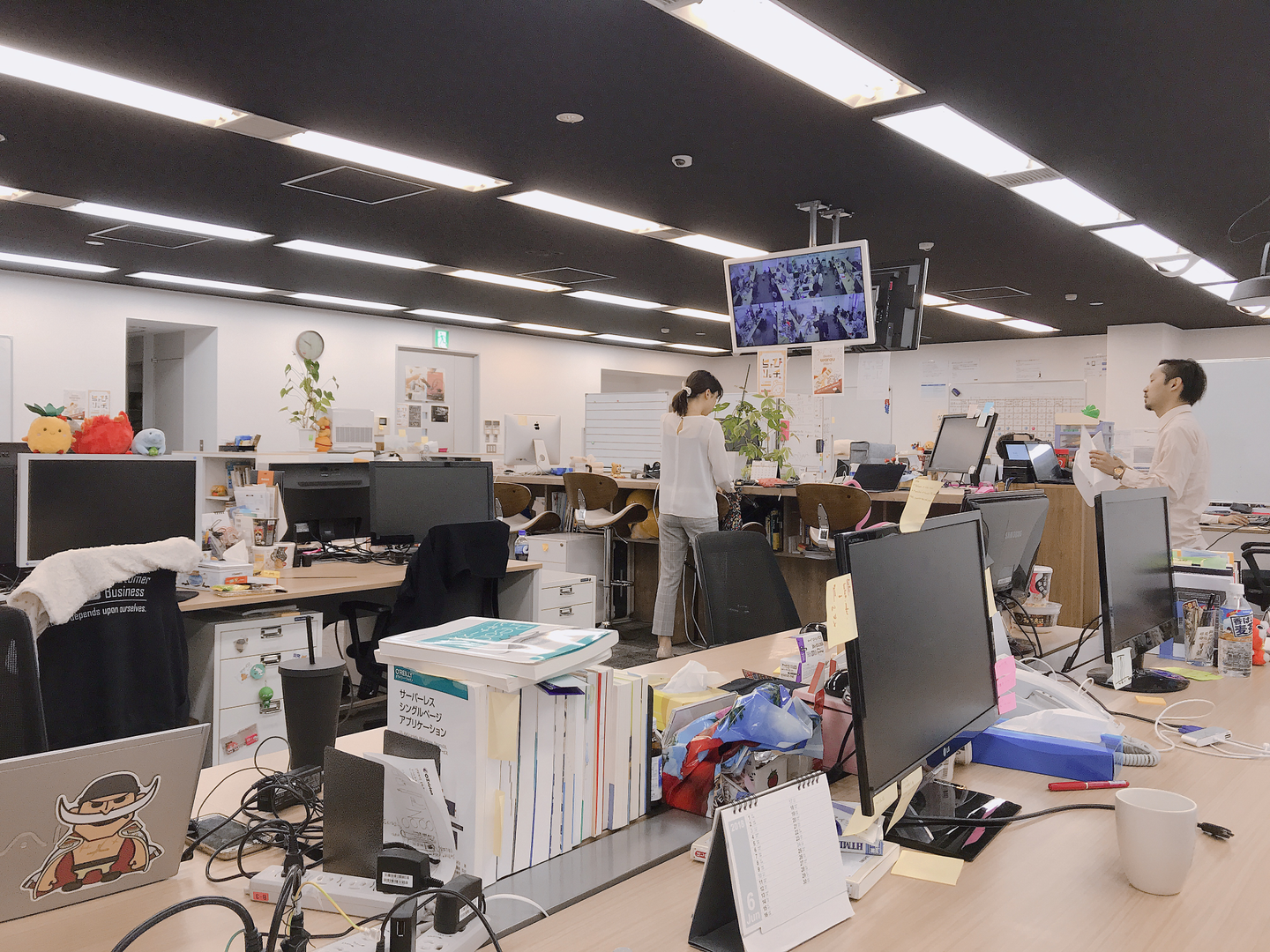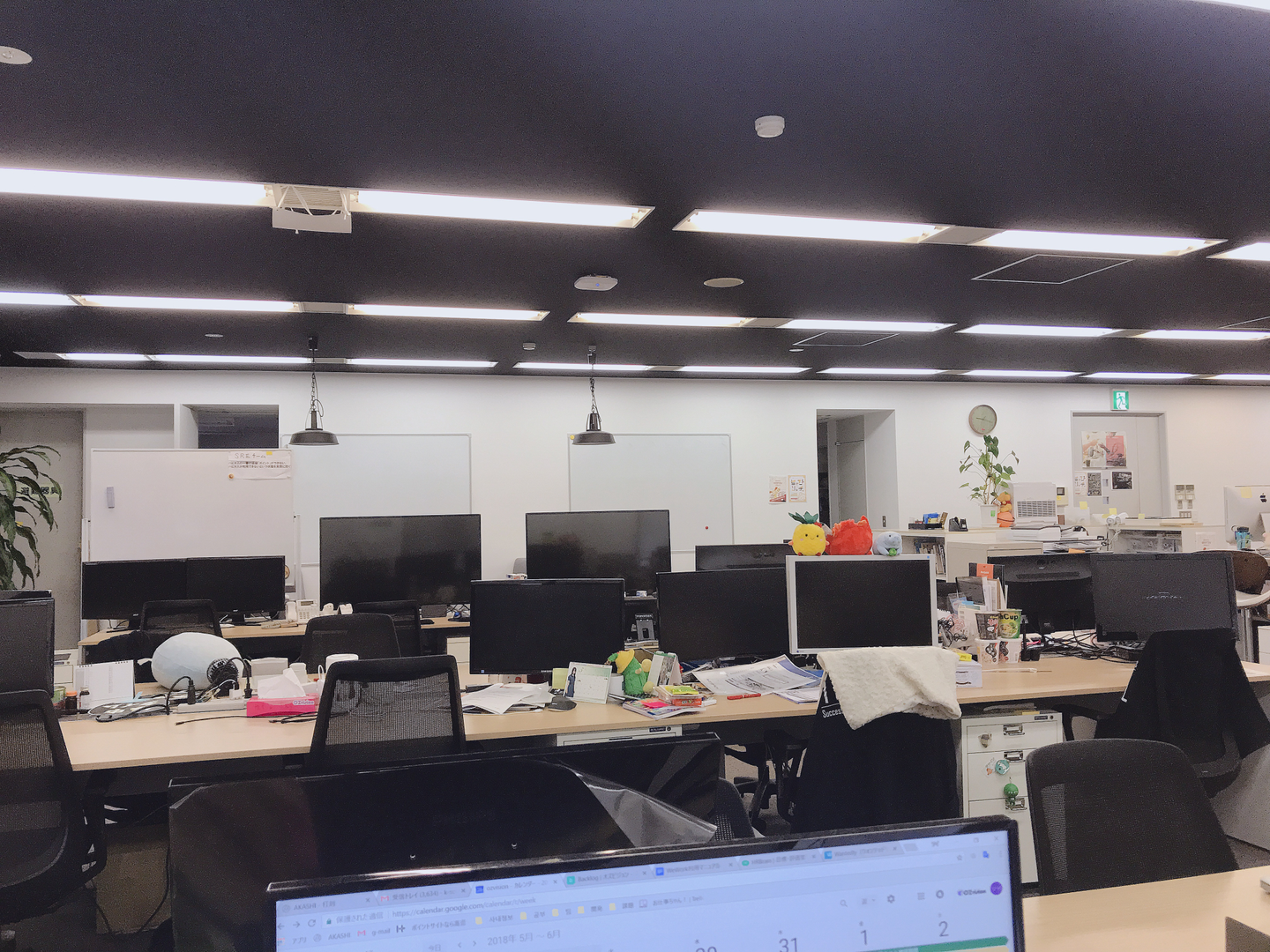 神保町のオフィスはこんな感じです!ここはハピタスのエンジニアが主に使う場所で、反対側には事業推進部の席からPOLLETチームの席まで、そして4階にはCRTチーム、UXチーム、toBチームなどのチームが使っている感じです。今は3階に分けているオフィスがWeWorkになると同じフロアになるのでとても楽しみにしています!