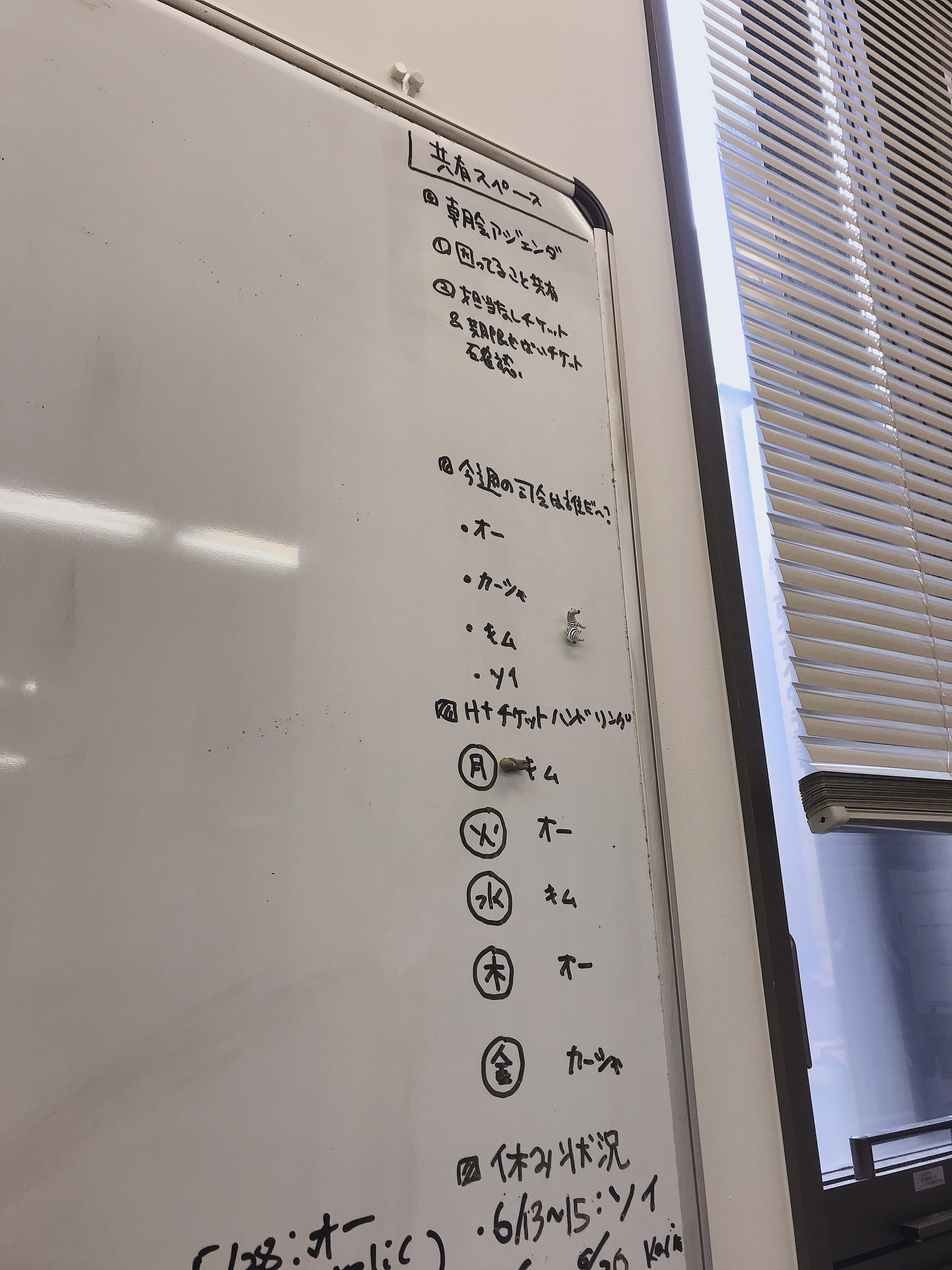 毎週火曜日の朝会の後には開発グループの全体会があります。開発グループの各チームで現状を共有して、意見を出したり、アドバイスをしたり、質問をする会議です。初めての全体会では全く他のチームの共有事項が理解出来なくて苦労しましたが、最近は一人で議事録をして先輩に議事録のフィードバックを頂いて全体的な流れを理解できるように頑張ってます!p( `o´ )q