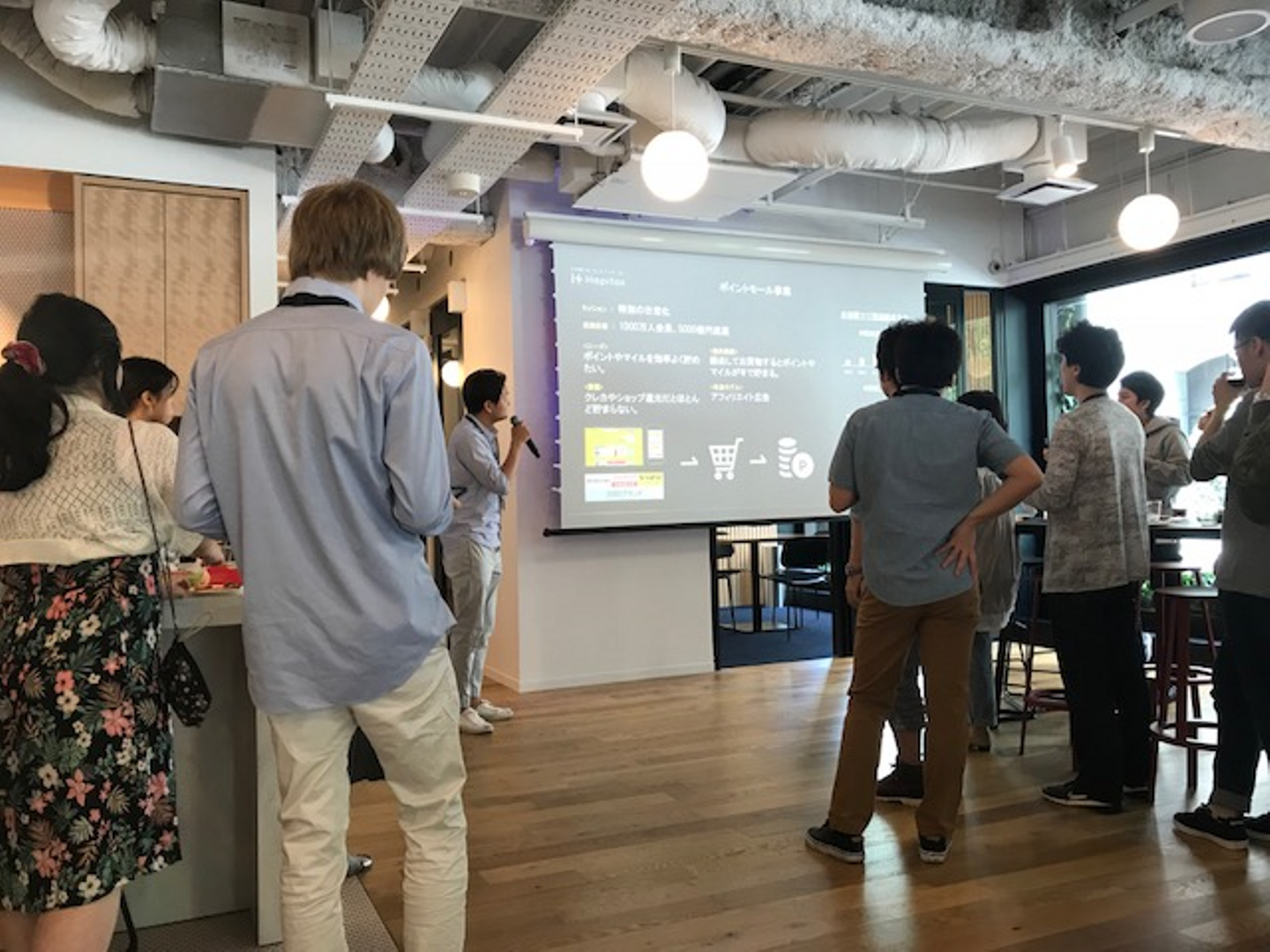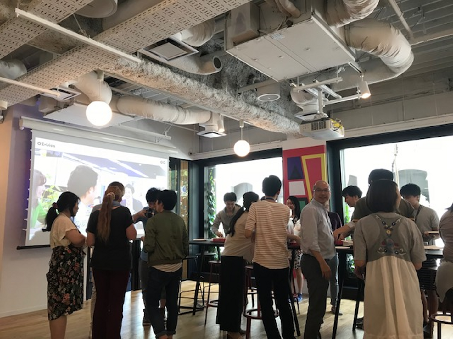 そして6月4日、weworkでの初日にはweworkの1階でオズビジョンのための歓迎会がありました!他の企業で働いてる方々もお越しくださり、普段出来なかった深い会話もできました。