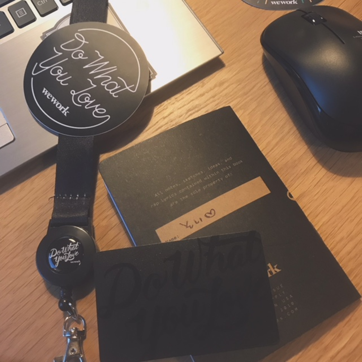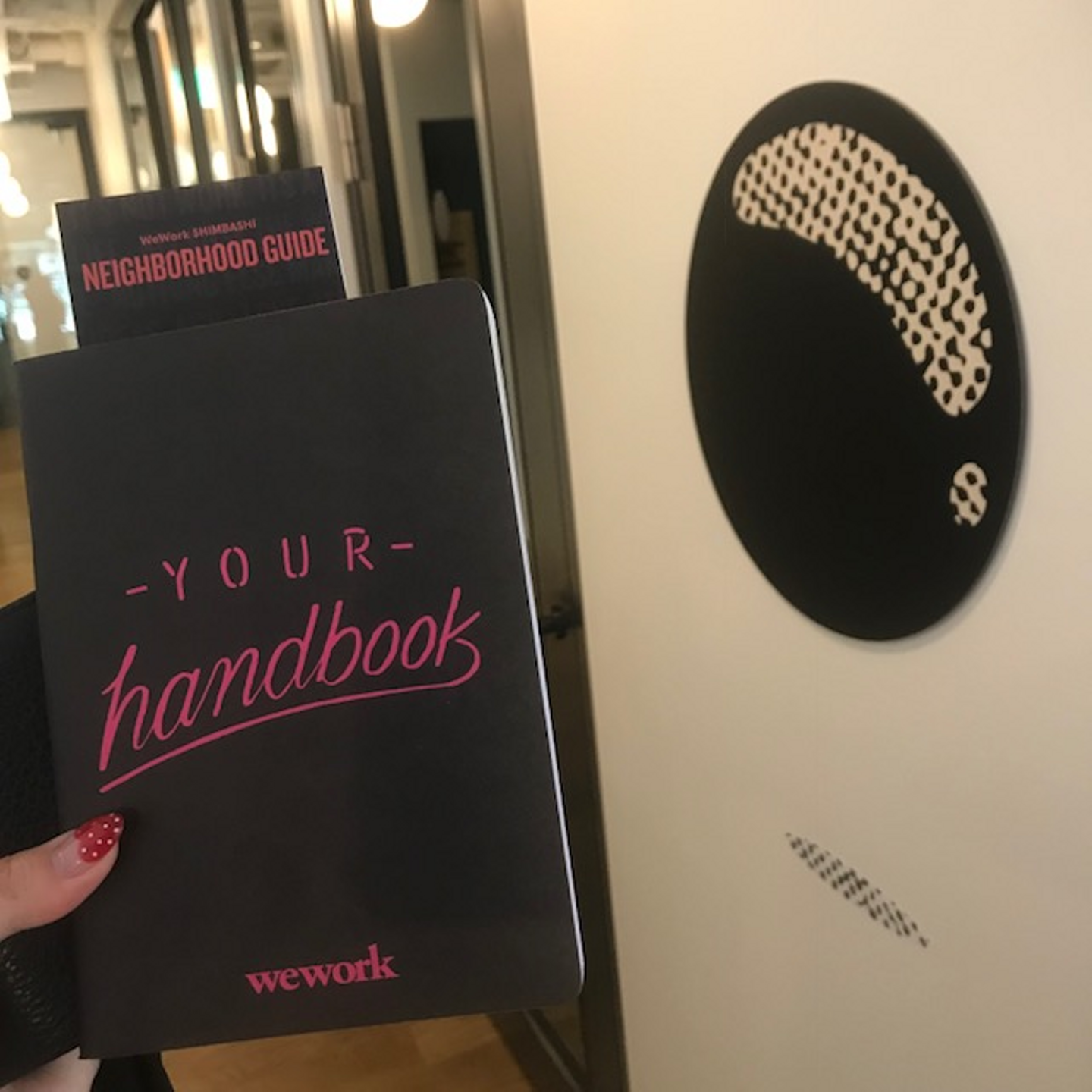 始めてweworkに出社すると、いろんなグッズが貰えます。weworkについて書いてあるハンドブックや、自由にカスタム出来るweworkオリジナルシール、Tシャツ、weworkバッグなど!モチベーションを高めてくれました。ヽ(‘ ∇‘ )ノ