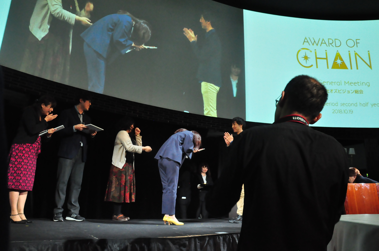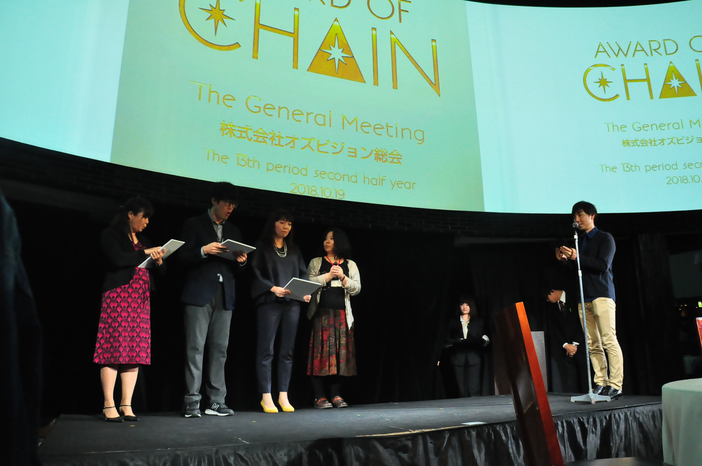 続いて、半年間の「挑戦(Challenge)と革新(Innovation)」について社員の有志がプレゼンを行います。その中で、特にビジョン実現に繋がる優れた活動を「AWARD OF CHAIN」として表彰します。