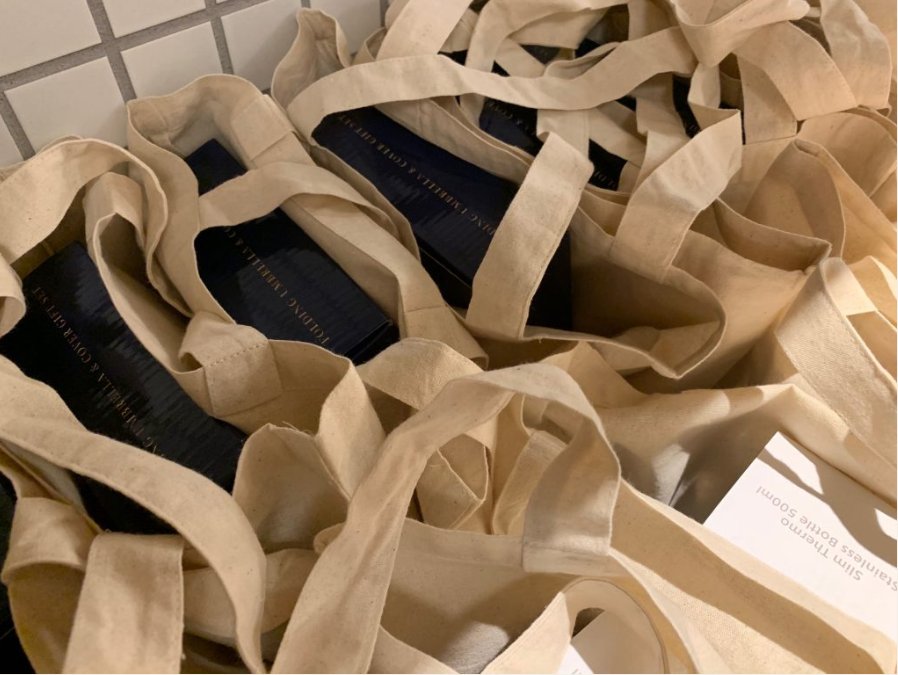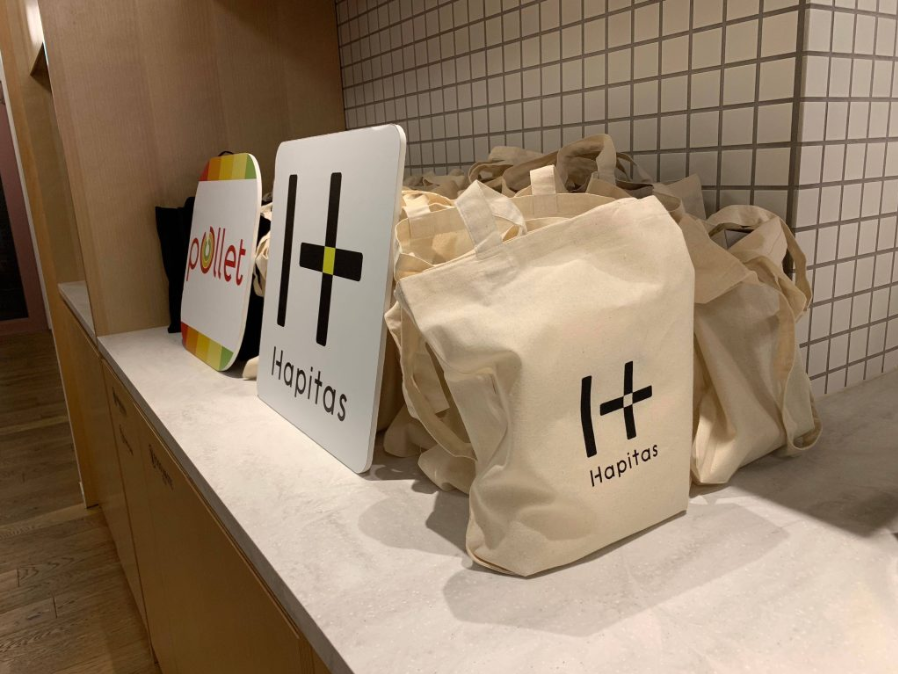 ハピタスのロゴ入りトートバックに……中身は内緒です^^