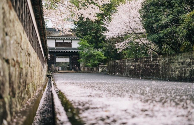 飫肥石でつくられた石垣などで形成される美しいまち並みが保存されていて、