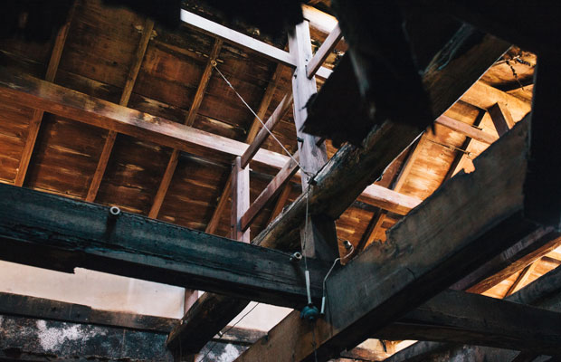 既存の屋根の構造体。梁のサイズや、柱梁間の寸法を再現するよう設計する。
