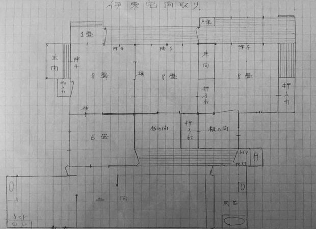 唯一あった図面っぽい資料。元家主さんが描いたであろう手描きの間取り図。