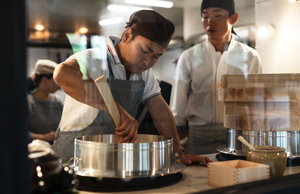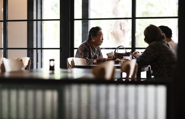 地元の方とそのお友だちが一緒に食事をする風景。地元も観光客も憩う場所ともなった伊東邸。