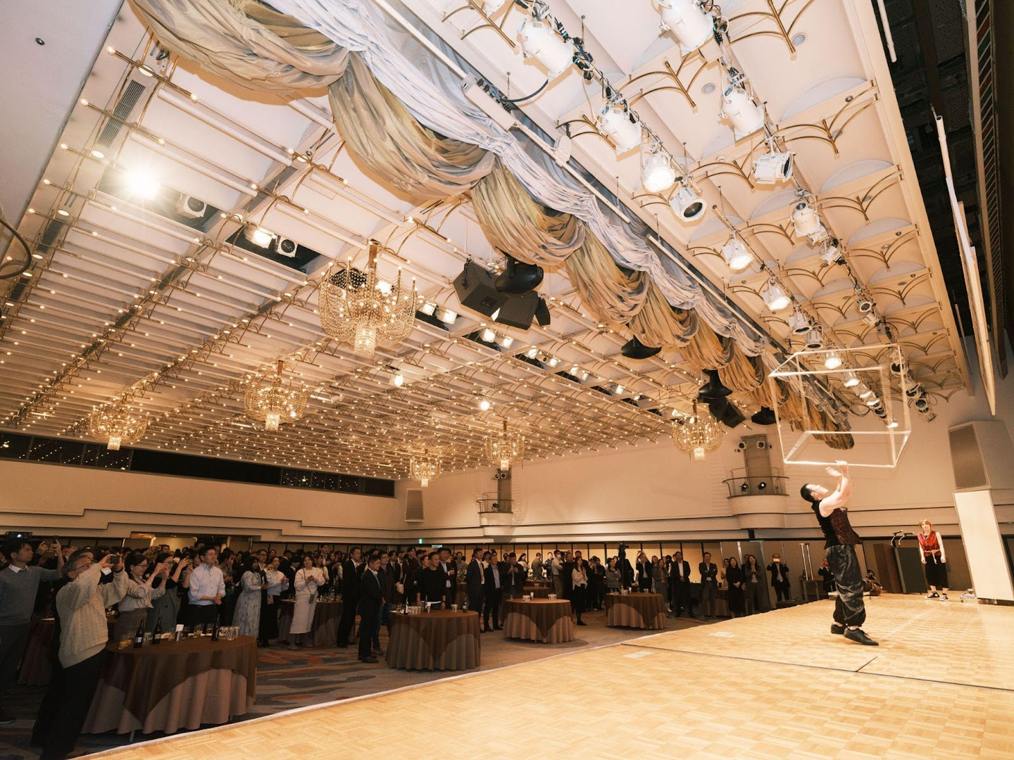 授賞式の後は、歓談の時間を経て、エンターテインメントショーがスタート。今回は、世界大会などでも活躍しているアクロバットパフォーマーによる、ハンドバランシングなどの見事なアクロバットステージで盛り上がりました。ホテルの高い天井にまで届きそうな高い場所でのパフォーマンスには、会場全体が思わず息を吞むひと幕も!