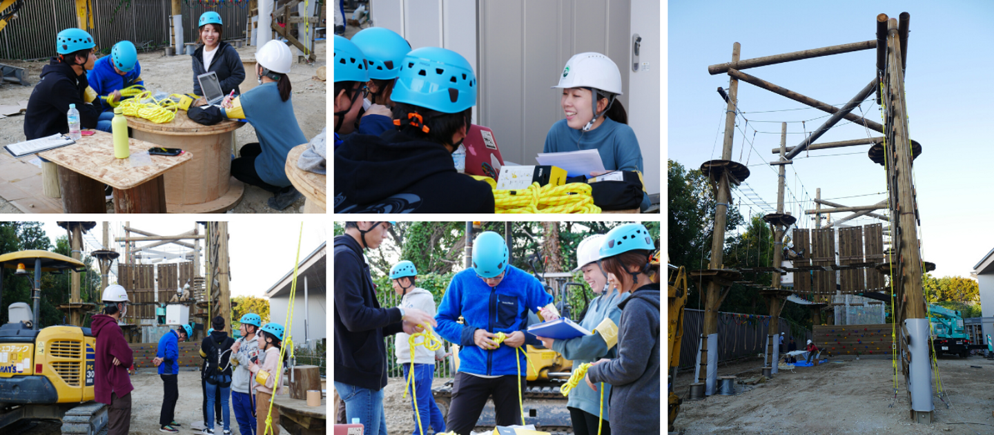 大阪市天王寺区にオープンしたアドベンチャー施設「PANZAてんしばイーナ」のオープニングスタッフ(上部集合写真左から、かずちぇる、まこ、ジロ、まゆ)に、オープン直前の11月上旬に、今までとこれからについてききました。