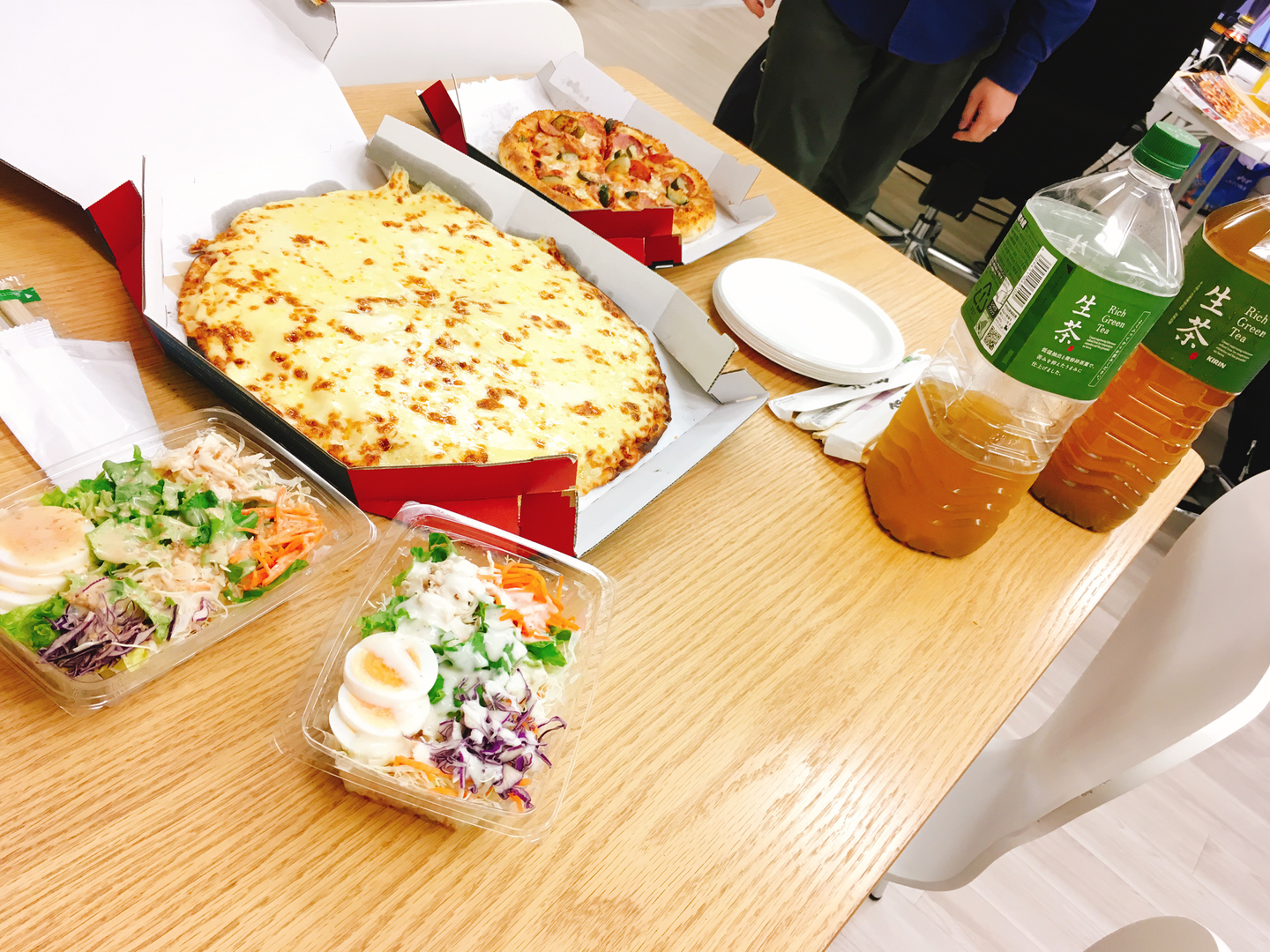 最近の社内イベントではお寿司続きでしたが、今月はあのeishis内を賑わせた濃厚なチーズピザが帰ってきました!(eishisではランチLT以外にもペアプロ・ペアデザ会といった社内勉強会、業務後に楽しむ人狼会や絵心大会、ボードゲーム会といった社内イベントも行なっており、昨今お寿司続きなのでした。)