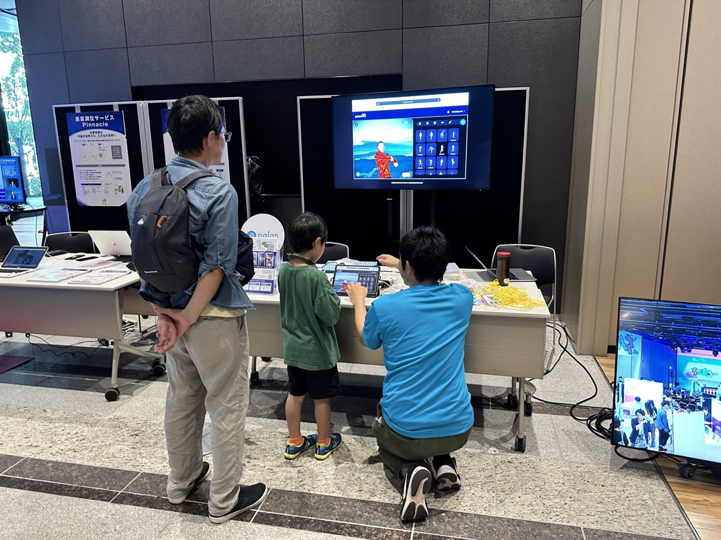 1つ目は、3枚の写真を撮るだけでアバターを作成し、ARとして体験するもの。その場で作成された自分そっくりなアバターとのツーショットなどをお楽しみいただけるものでした。アバター撮影の際はpalanスタッフが撮影することともありますが、家族同士で撮影するなど、AR体験前のコミュニケーションも楽しんでいただくことができました。