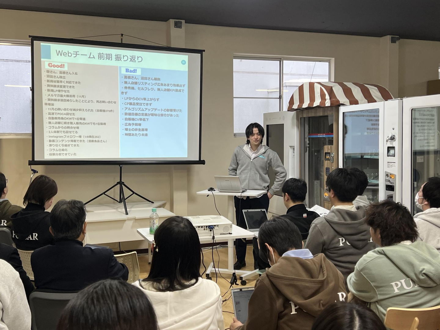 1人を全員が褒めまくるワークですが、非常にいい雰囲気で、全体の空気が温かく前向きに愛が溢れる感じになって、期初のいいスタートになったと思います。