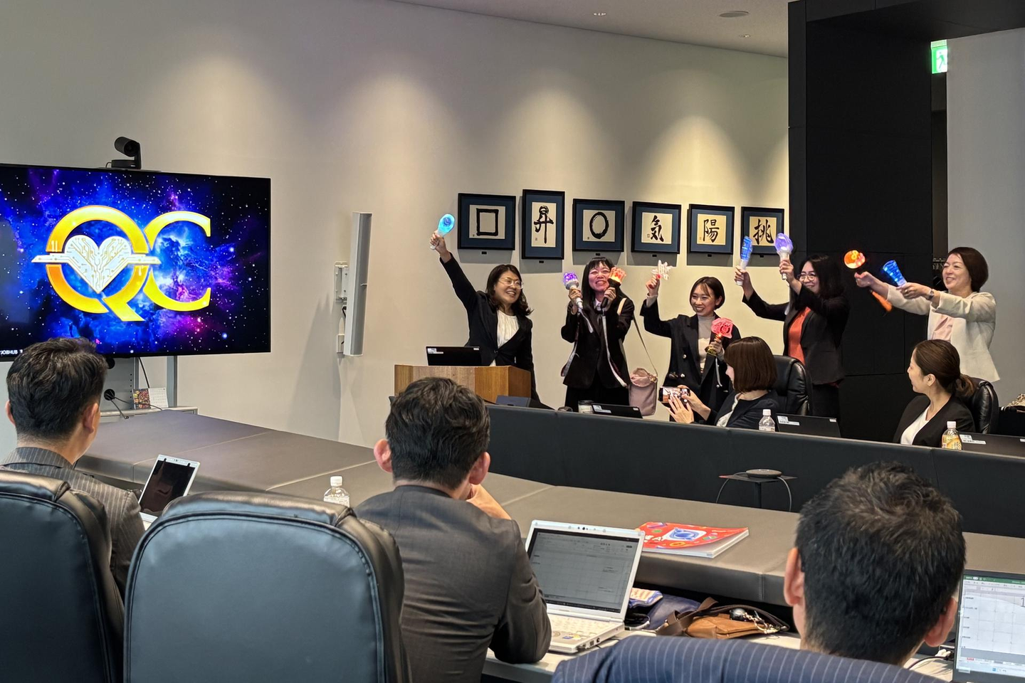 ▲ AIによる業務標準化と全社リスク対応の実現について、個性溢れる発表を行ったQC室(サービスクオリティコントロール室)の皆さん