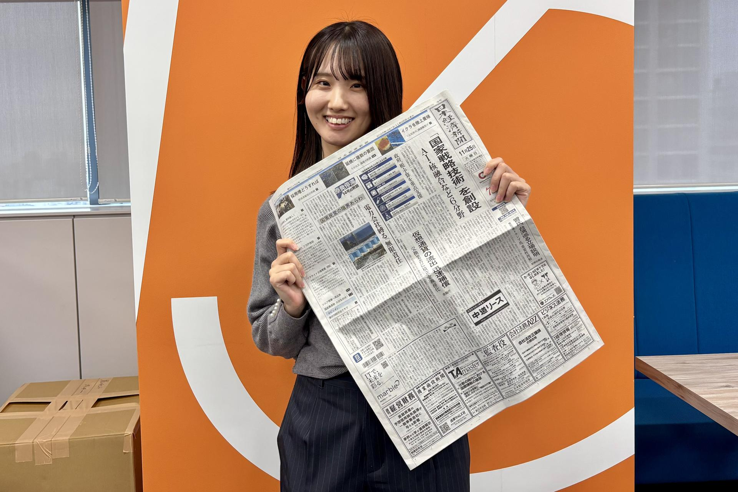 「今まで新聞を読む習慣が全くと言っていいほどなかったのですが、社会人になってから世間情勢や取引先について知るべく新聞を読み始めました!実際には電子版で読んでいるので、通勤時間にスマホでちゃちゃっと確認することが多いです!」