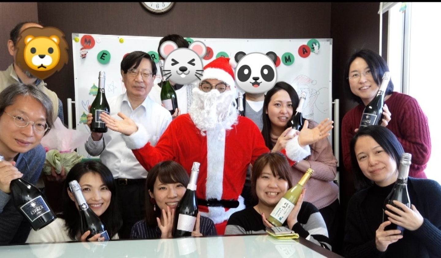 飯原サンタからは、フルーツケーキとお酒が飲める人はシャンパンを、お酒が飲めない人はぶどうジュースをもらいました♬