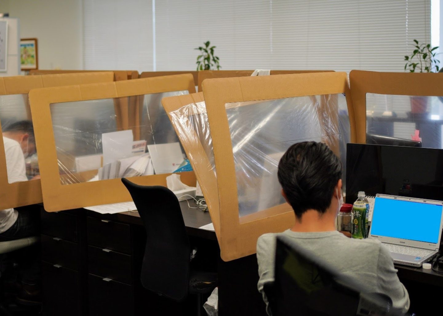 ・毎日出社する事業部には、机の間に設置するパーテーションの支給