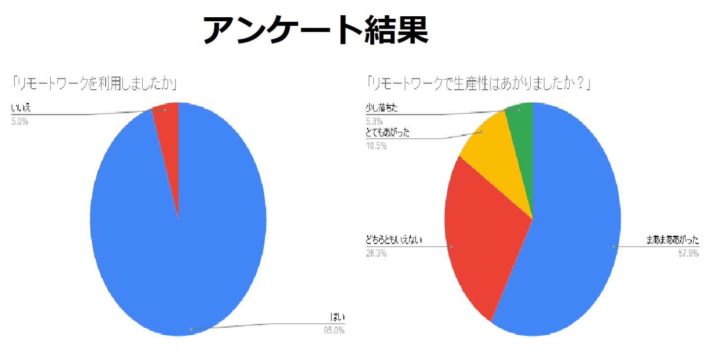 リモートワークに初挑戦してみて、社員はどう感じたのかなどアンケートを取ってみました。