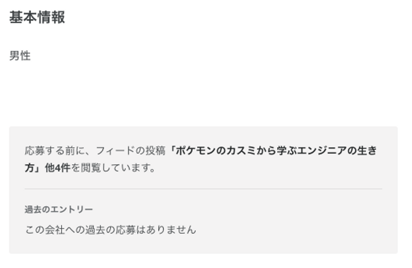 会社側ページには、候補者プロフィール末尾に、自社の記事やフィードを読んでくれたかどうか分かる機能があります。