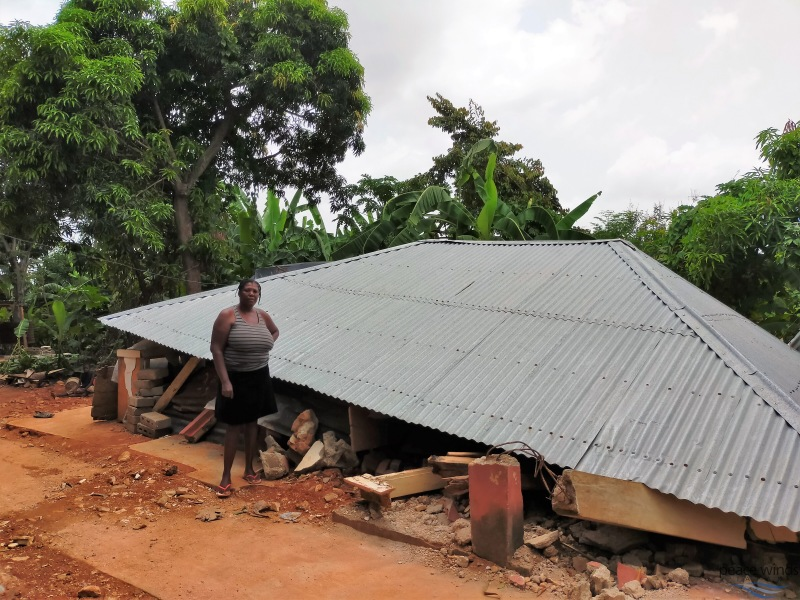 ②:Wilmaneさん一家は、家が崩壊した後もこの家に住み続けています。Wilmaneさんの子どもは地震発生時、家の中におり、負傷したため今も治療中とのことです。