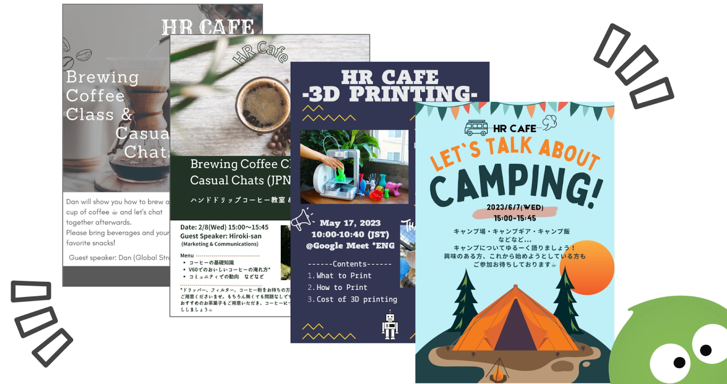 (これまでに実施したHR-Cafe。ある回では、コーヒーに詳しいPeapsが実践しながらコーヒーの淹れ方を教えてくれました。)