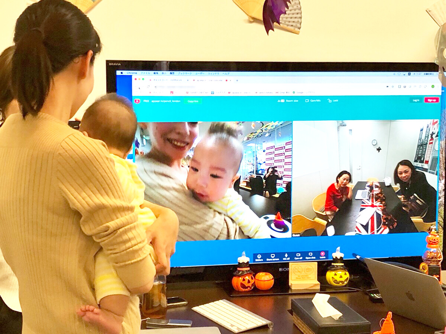 ↑ 育休中のスタッフがオフィスに遊びに来てくれたので、 TV会議で東京スタッフにもごあいさつ...♫ とっても癒やされます(*^^*)