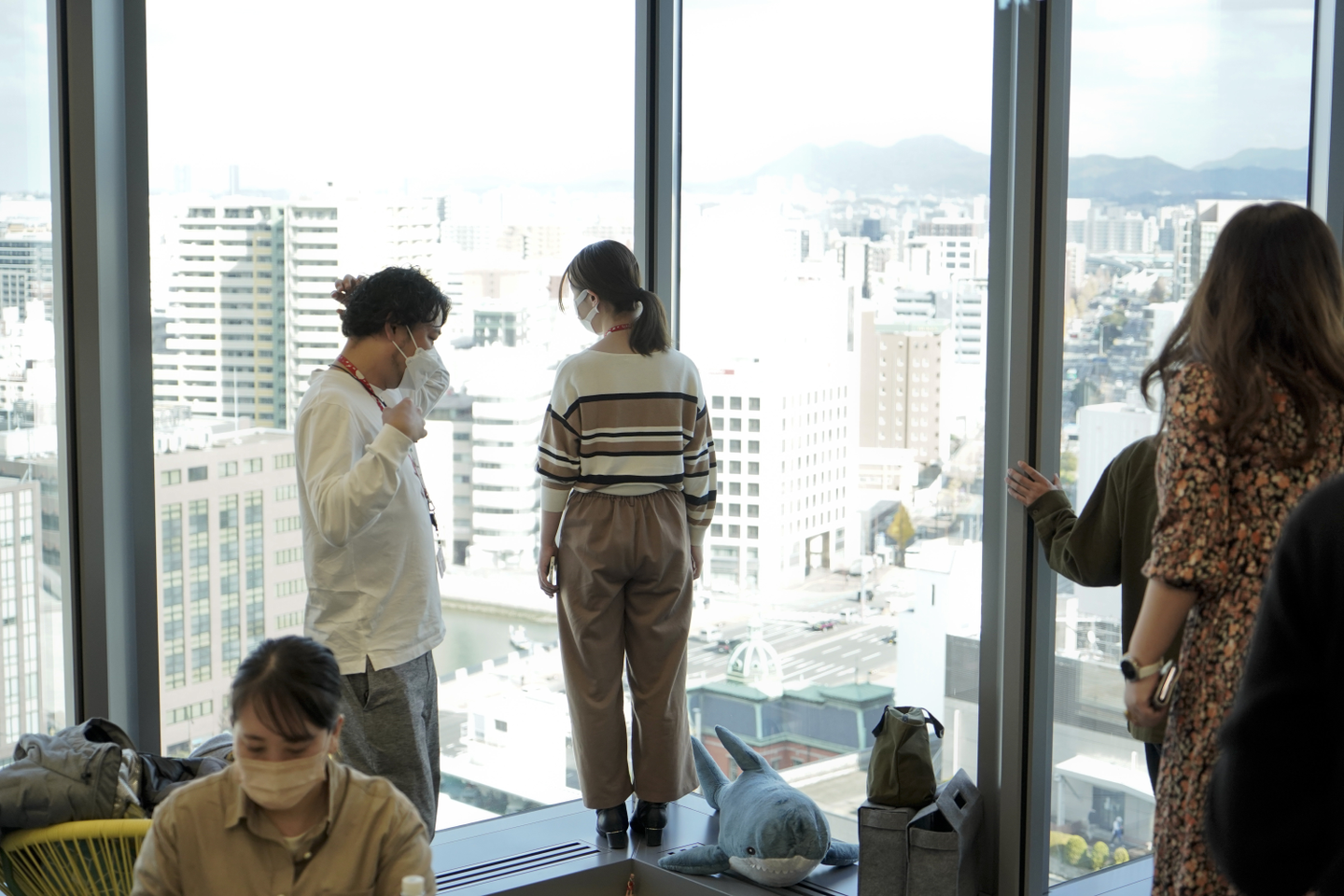 ペンシルがオフィスを構える15階からは天神〜博多湾が一望できて最高です。天神をこんな高い場所から見られるなんてスゴイ!というのが率直な感想なのですが、それだけではありません!