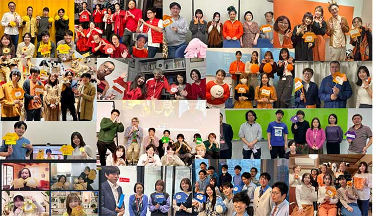 今年は、LGBTQ+とALLYの象徴であるレインボーフラッグの6色を部署ごとに決めて、全部署で集まるとレインボーになるようにしました。実際には、海外拠点の台湾や東京オフィス、長崎の離島壱岐等にあるサテライトオフィスと、一同に集まれるわけではありませんが、目的を共有することで気持ちは一つ。