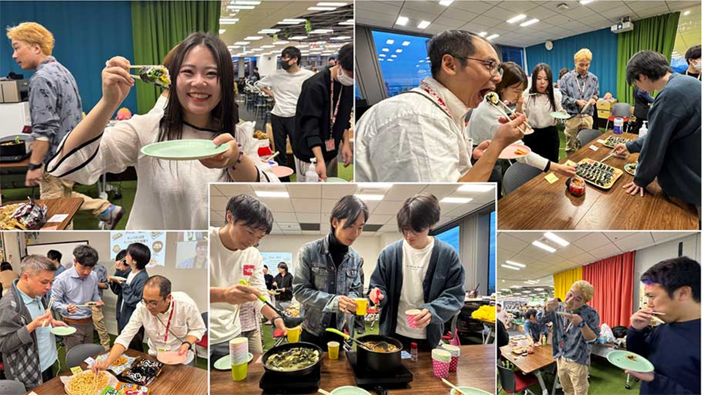 夕方の実施ということもあり、お腹をすかしたスタッフが続々と会場に集まり、見た目も美しく出来上がったお料理を食べ、ラジオの楽しい話を聞きながら楽しくお互いに交流するという、ダイバーシティウィーク最終日にふさわしい充実した時間を過ごし、お祭り気分を満喫しました。