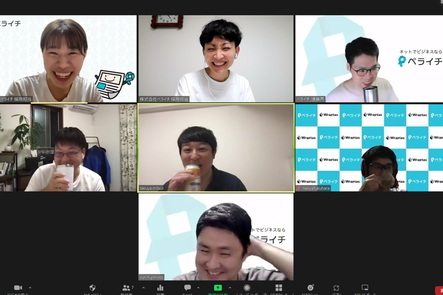 リモートワーク下でのコミュニケーションを図るため、任意参加でのオンライン飲み会も定期的に開催しています。